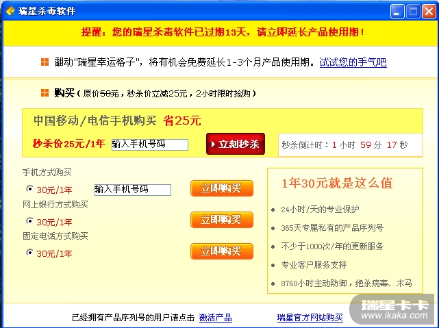 瑞星防病毒安全软件