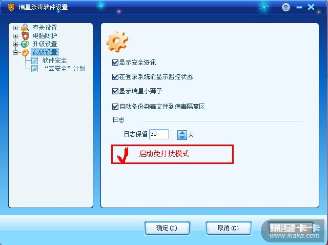 从2007年使用正版瑞星开始到现在,瑞星还是没有我想要的功能设置(进入游戏或者全屏看电影时启动免打扰模式)。