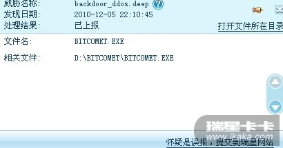 回复:每次我打开BT下载程序,瑞星今天已查杀病毒那里就会有这个
