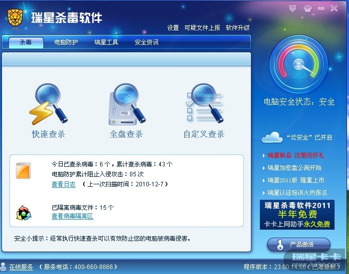 [求助] 每次我打开BT下载程序,瑞星今天已查杀病毒那里就会有这个