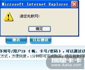 [求助] 我刚用手机买激活码,可是在激活的过程中瑞星提示我请我先连网,不知道什么意思,我本来就在网上