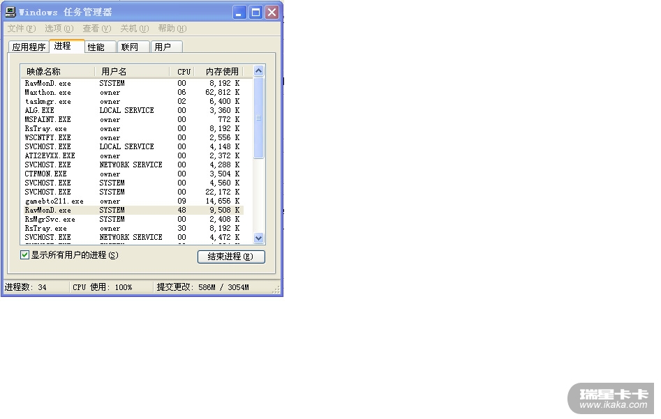 回复: 我每次使用软件,瑞星的两个进程CPU使用率就占到100%