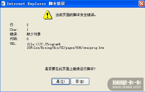 请楼主清空IE缓存后,重启电脑观察是否正常,如仍有提示,请提供您的IE版本号,瑞星软件类型及版本号。