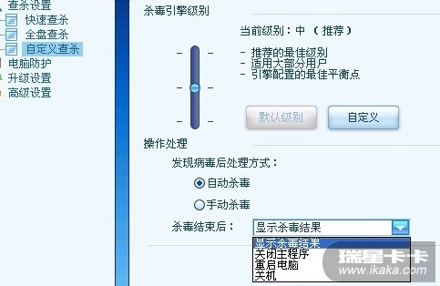 [求助] 瑞星2011如何设置查杀后自动关机?