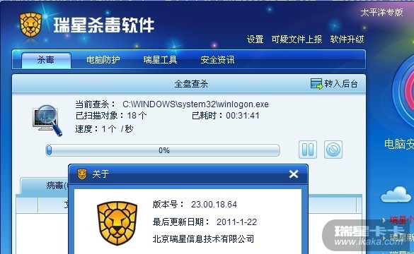 瑞星杀毒软件2011太平洋专版杀不了毒