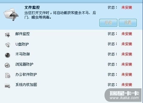 瑞星2011版(有产品注册码)安装后显示电脑防护都未安装