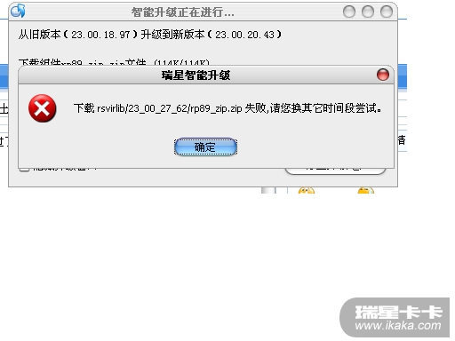 楼主的瑞星版本是多少?如果是跨版本升级时是几乎无法直接升级成功的。