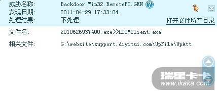 我杀出了Backdoor.Win32.RemotePC.gen病毒,但是瑞星没处理
