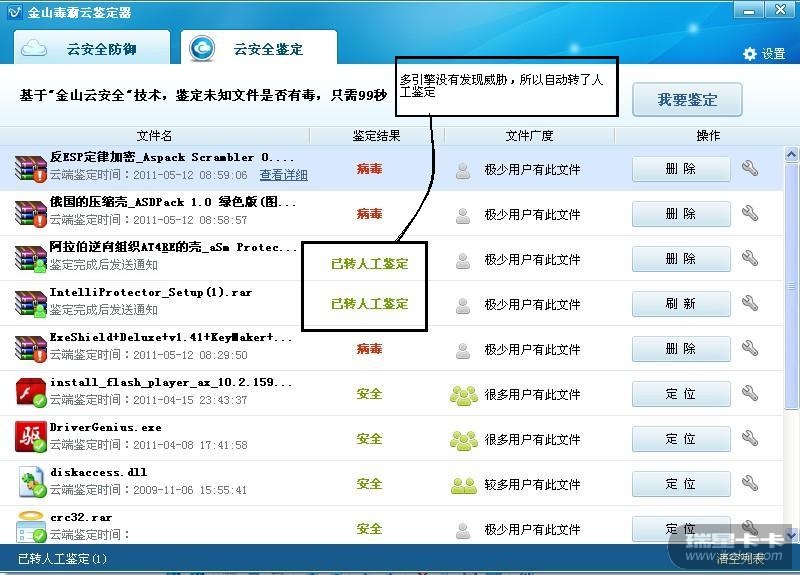 建议瑞星能在后台 将 系统中未知的文件 上传 ,用多引擎鉴定