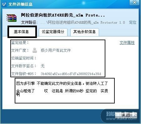 上述三幅图 就是 此文件的 详细信息 ,因为 没有报毒的 所以 金山云 自动转 人工鉴定了!!!