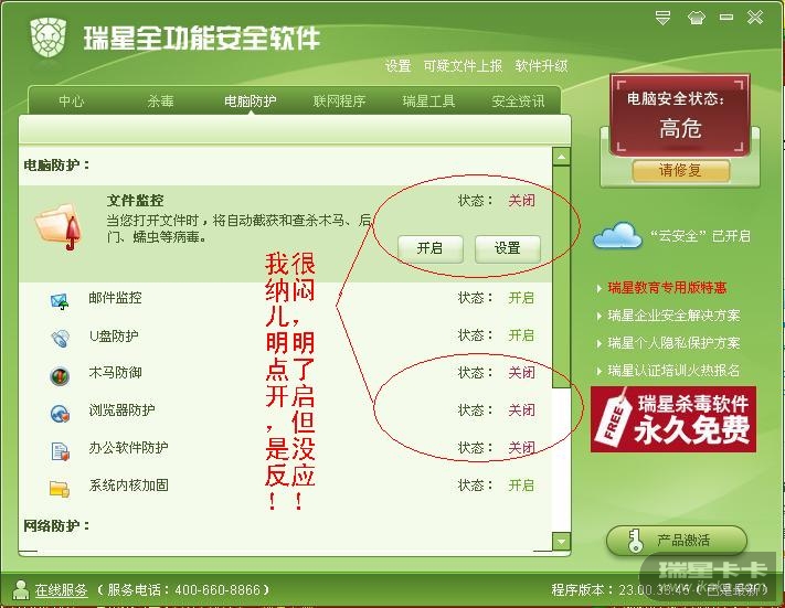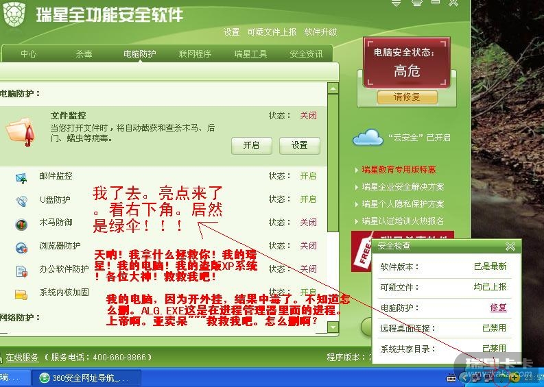 [求助] 紧急!大神速进。瑞星出错,电脑中毒。