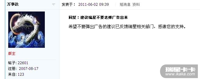 瑞星弹窗口广告不是一天两天了 每次反应你都是机械式的回答 也许你是上报了可