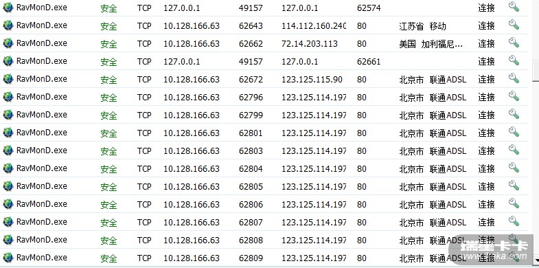 我电脑上瑞星链接超多,还有那系统空闲时间进程也会进行大量的联网,具体情况还不不太了解