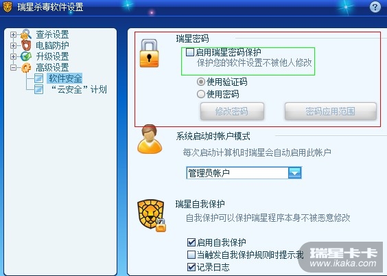 这样杀毒取消或者设置更改时不需要验证码