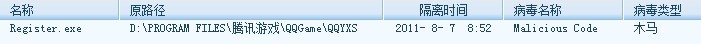 qq游戏2011版beta2p3安装报病毒,是不是病毒,隔离区截图