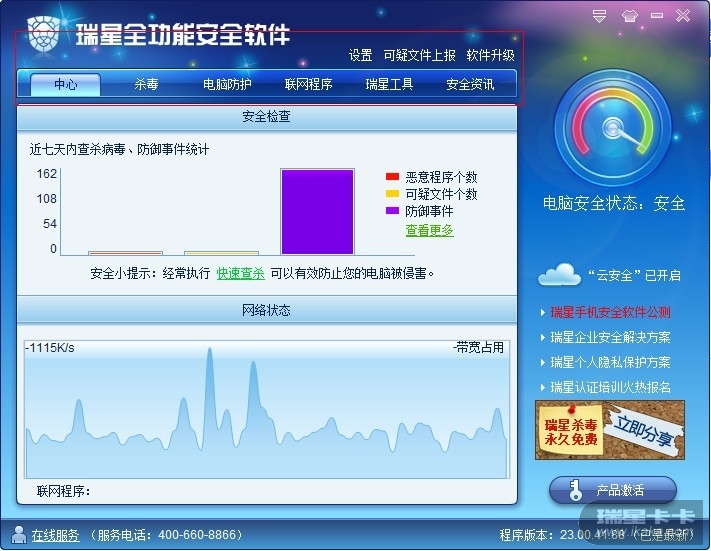 建议瑞星采用“功能隐藏方式”显示功能。例如,快播5、火狐6等。