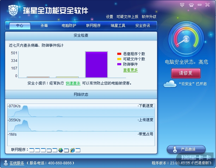 该有开机时,瑞星安全助手遇到问题需要关闭,再打开也没反应,打不开了,怎么回事