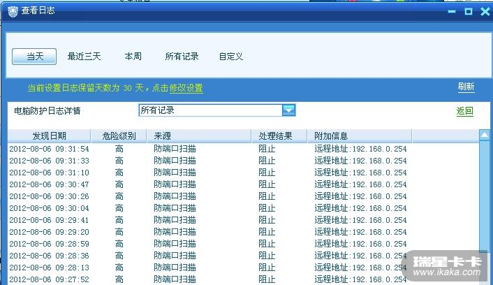 0.254经常要远程访问0.252,但瑞星全功能每天都提示“防端口扫描”报警,导致0.254的AD经常无法连接