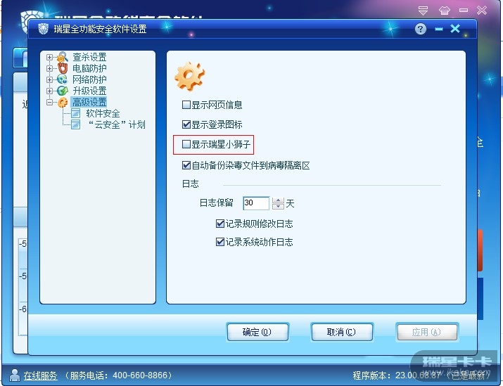 说明:2011版瑞星的设置
