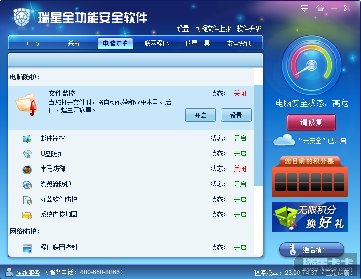 win8安装瑞星全功能软件,杀毒不启动、监控不开启