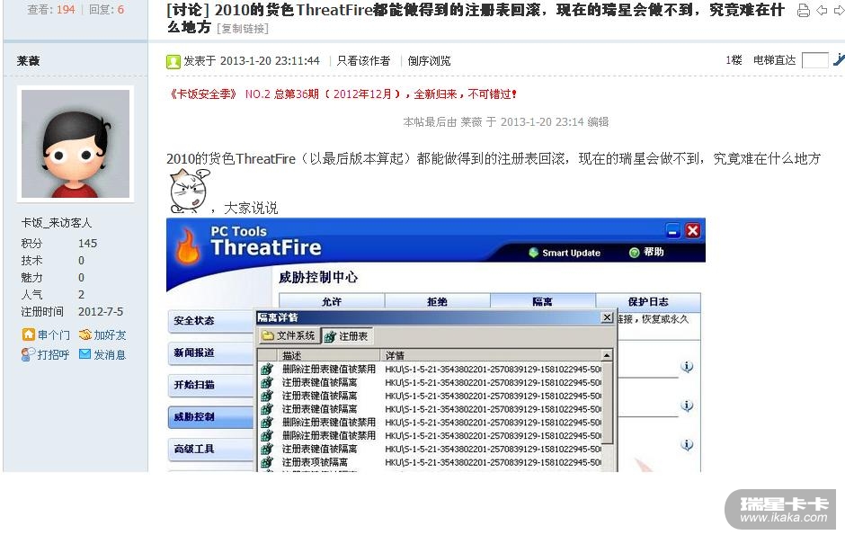 瑞星2012和2011的木马行为防御有没有加入回滚,解答一下疑问