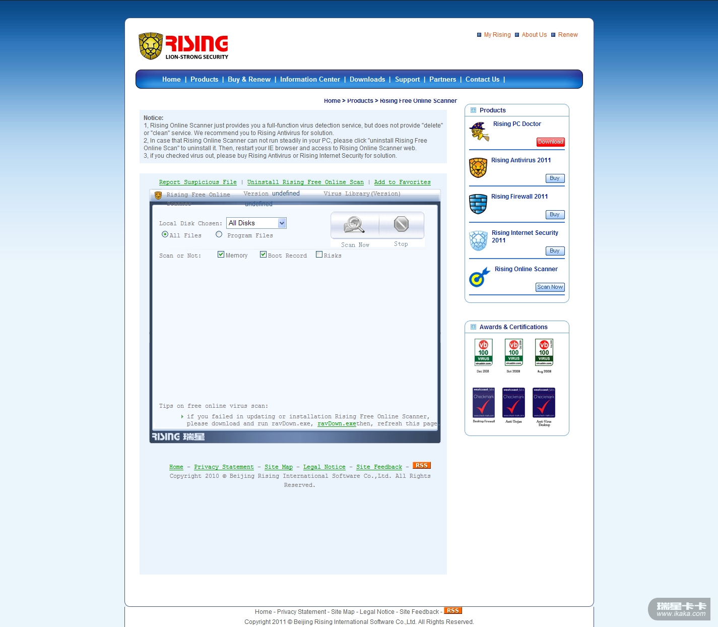 今日在瑞星国际网站上看到瑞星在线杀毒网站,如图