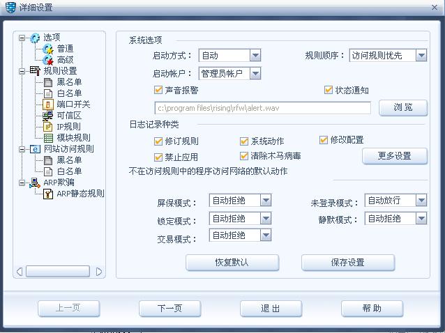 瑞星防火墙——设置——详细设置