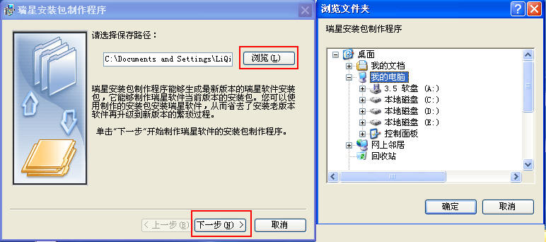 2.点击瑞星安装包制作程序,通过浏览可以自己修改保存路径,点“下一步”继续。如图: