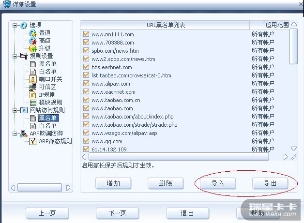 导出(预防下次重装防火墙数据丢失了还要重新找那些网站而麻烦,也方便重装防火墙时可直接导入现在的数据!)没招,在网上看了看,太深奥了,但有一点可能是对的,比如说导出的文件属性要求是“