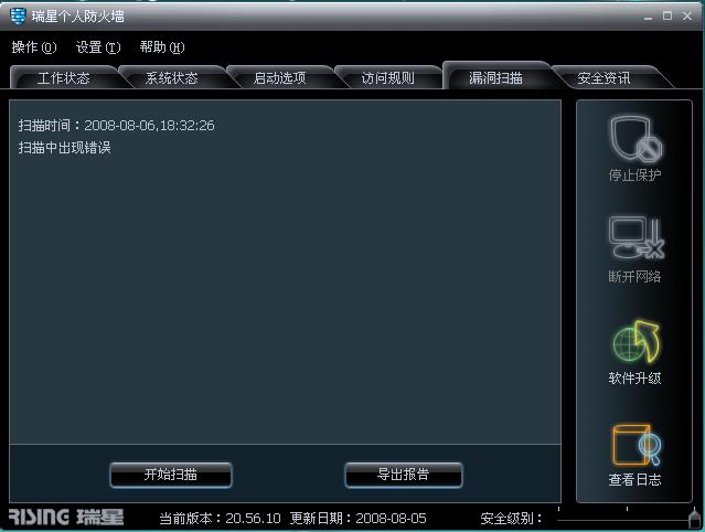 软件异常,楼主提供的截图,右边的:停止保护、断开网络已经无法选择,建议检查系统的年月日是否正常,卸载重新安装防火墙