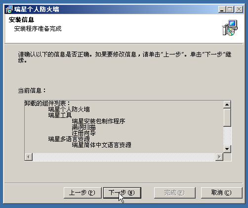 把瑞星防火墙卸载并重新安装。但重新安装后故障依旧。