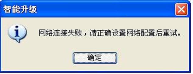 一.现象描述:点击升级时就提示网络连接失败,请正确设置网络设置后重试。