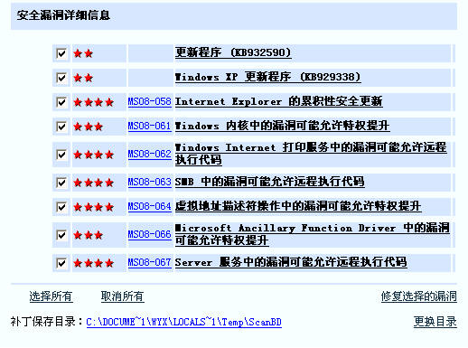 瑞星扫描出来的补丁信息,不包含微软验证补丁程序,楼主可放心修补漏洞。