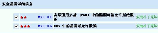 在第三幅图里,显示的是安装补丁完毕。重启电脑以后,一查找漏洞,还是有这两个漏洞。这是怎么回事呢。这两个漏洞为什么总是修复不了呢?