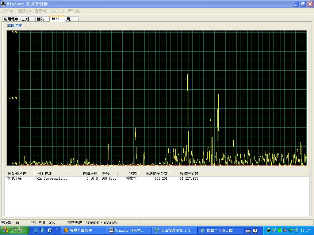 为什么我的电脑打开瑞星防火墙查看网络状态发现发送字节数很大
