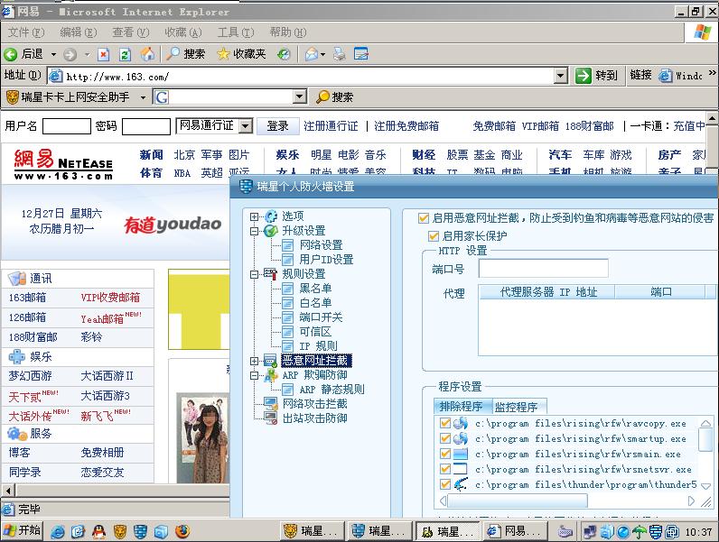 [求助] 瑞星防火墙2009打开网址过滤 不能上网