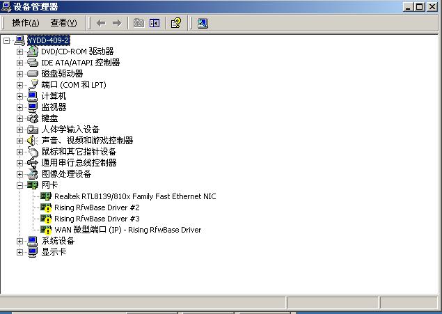 强制重新启动后,却发现新的网卡,在安装驱动程序的过程中,驱动程序好像都是跟瑞星有关,可结果增加了三个网卡选项,都是没完全驱动的。电脑也上不了网了,害得我下午的工作没完成,严重影响了我的工作成绩。
