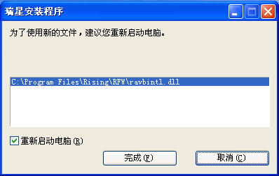 今天我的瑞星个人防火墙2009突然提示,要启用新的文件,需要重新启动电脑。