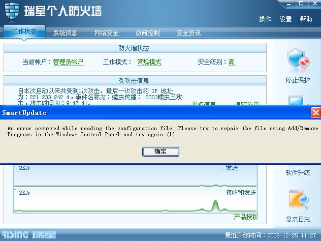 根据个人经验,修复不一定有效,最彻底、最简单的方法还是将防火墙卸载,而后到瑞星网站下载0安装包,直接装成09版即可。