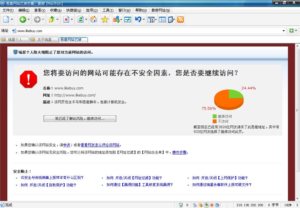 09版的瑞星拦截网站了.