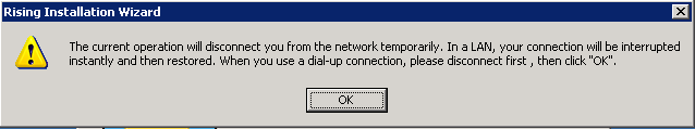 提示一个对话框,说此操作将中断网络,如果局域网会很快连接,如果是双绞线上网,请先断开再执行。