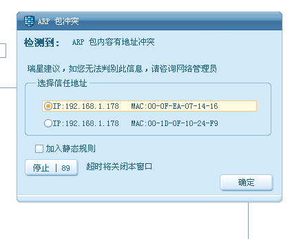 没见过这个东西,电脑一直提示我,所以就更改了静态规则,本来以为不会有什么事情的,可是这几天一直说可能会受到攻击,而且arp 与所包含的地址冲突,进行mac检查,不知道什么意思,求助`