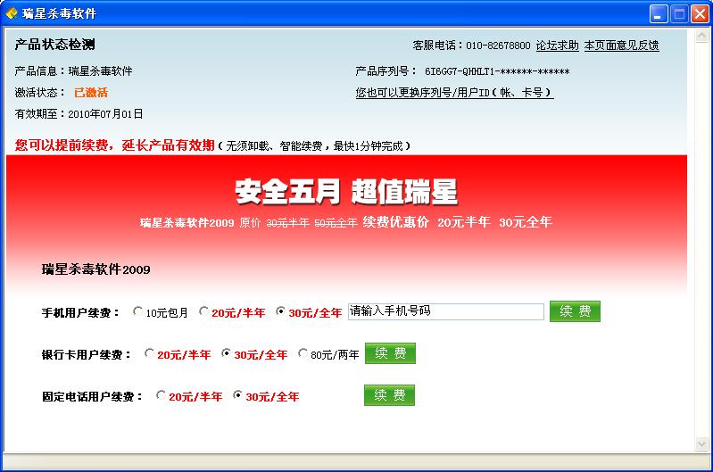 楼主购买的是瑞星杀毒软件的序列号,不包括瑞星防火墙的