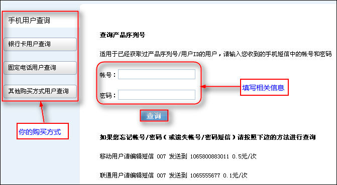 ,然后根据自己的购买方式来查询,如下图: