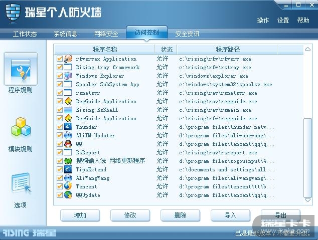 我已经网上找过了,基本上说是重新编辑访问规则,大家看到了,规则里面是有旺旺的,但是就是登不上。每次都得把瑞星防火墙停止保护才能登陆。