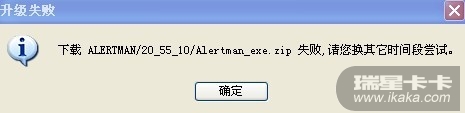 最近瑞星防火墙不能自动升级。每次点击升级时,就弹出一个对话框,内容是:下载ALERTMAN/20_55_10/Alertman_exe.zip失败,请换其他时间段尝试。有哪位高手知道这是怎么回事呢?万望指教为盼。