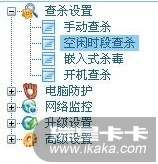 正常的防护设置,应该是以下几个菜单:1,查杀设置;2,电脑防护;3,网络监控;4,升级设置;5,高级设置。