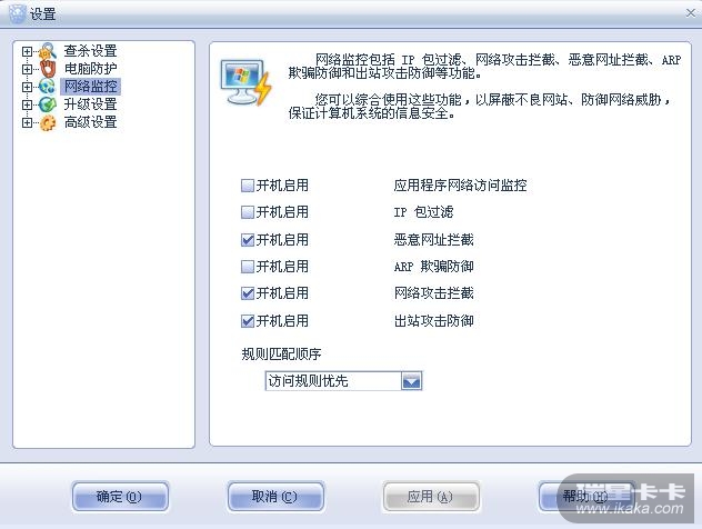 我的是全功能软件,设置开机启动arp防御,应该都差不多吧。