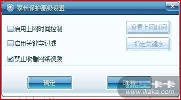 D、点击『高级』按钮,弹出高级功能设置界面,如下图,勾选『禁止收看网络视频』功能。