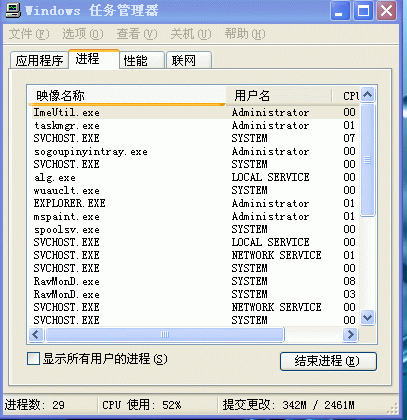 CPU占用75%的时候,进程列表里面是什么进程占用的?